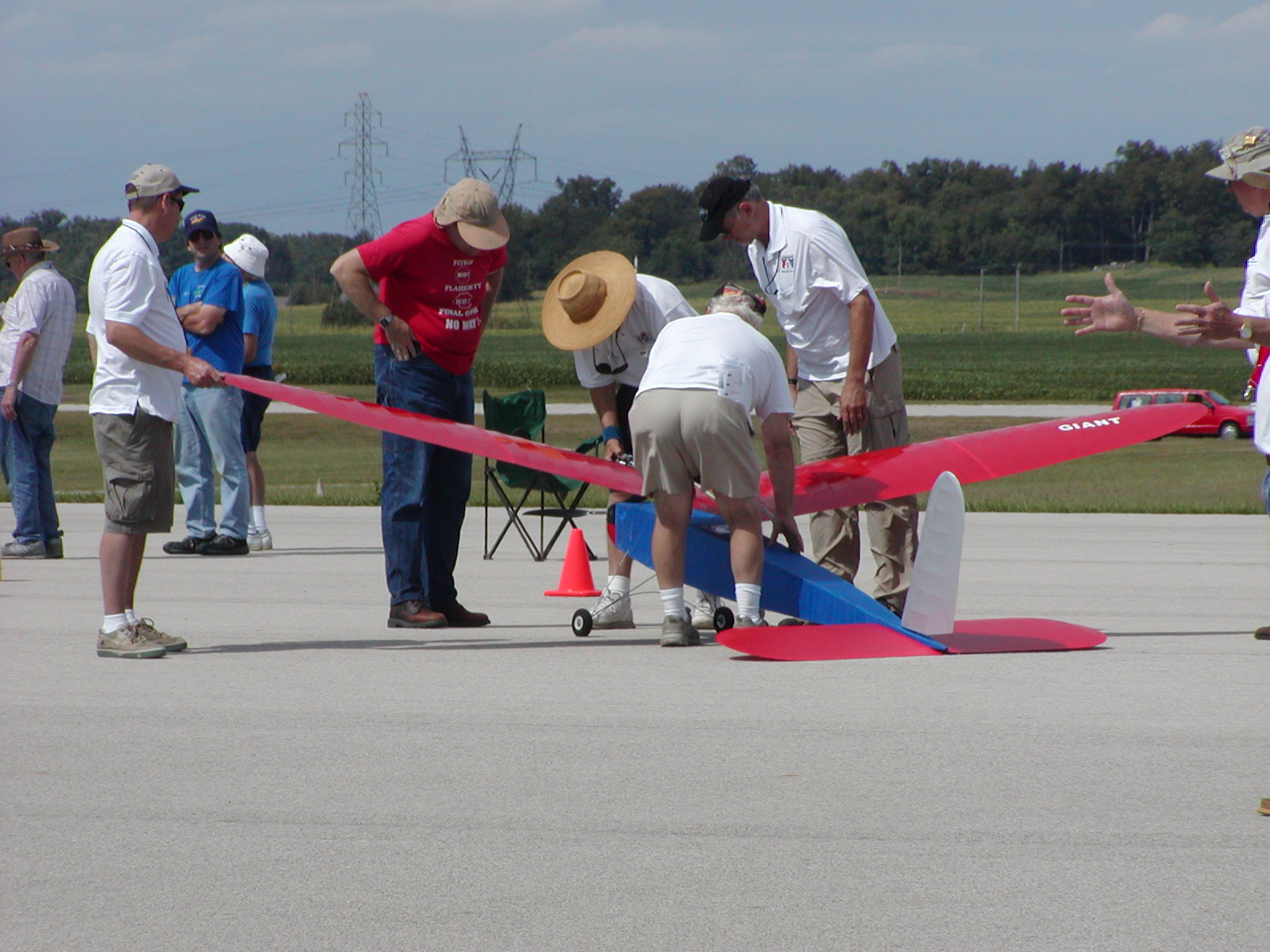 Dave Harding's crew getting the Boehle Giant ready for flight in the electric event |