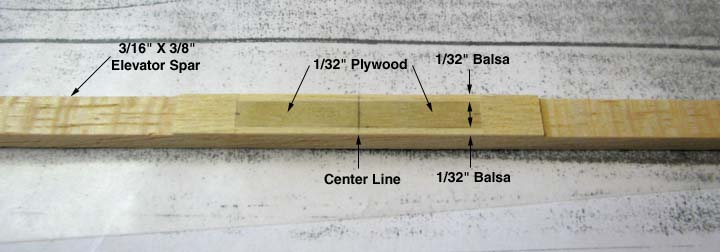 notice the 1/16" gap between the stab spar and elevator spar to account for