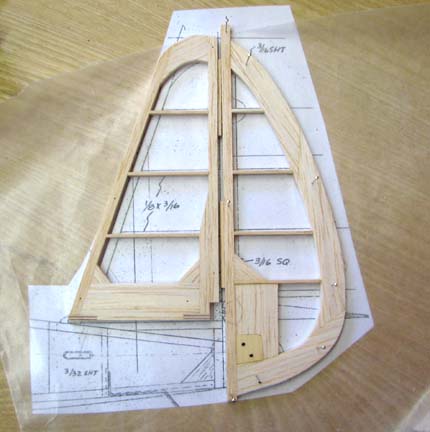 picture the large balsa reinforcement insert in the lower part of the rudder