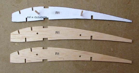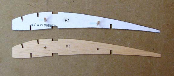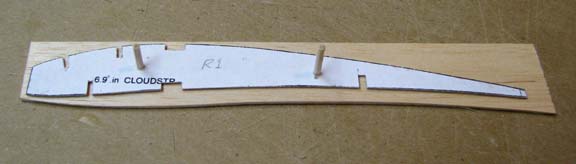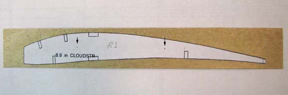 ribs, the next step was to first cut out the 1/32" plywood R1 rib template