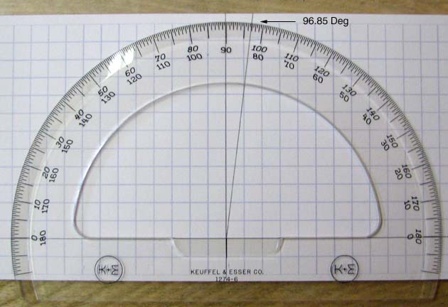 angle of the inclination jig is 90+6.85 = 96.85 degrees. This angle was laid