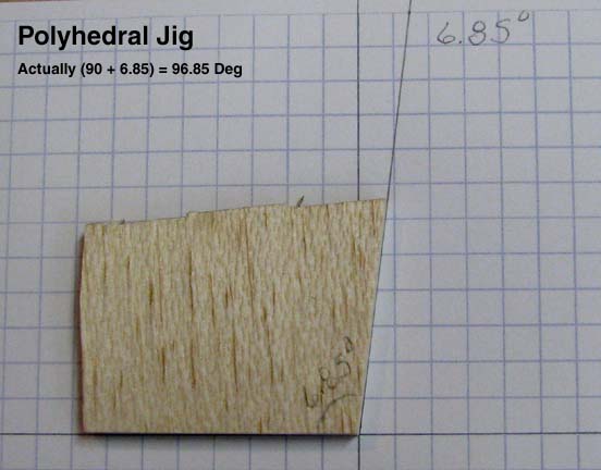 using a piece of 3/16" balsa, one edge of the polyhedral inclination jig was