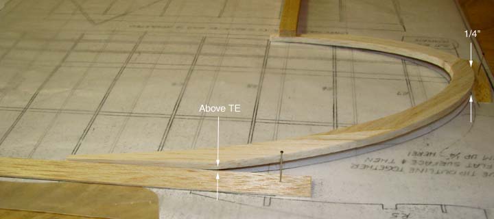 rib pattern below. First, the bottom spar is elevated 3/32" off the plan. By