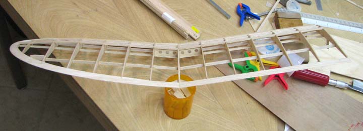 finished left half of the wing with the plywood brace glued in place.