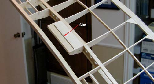 1/16" plywood has been slipped into the slot for a test fit. After the wing