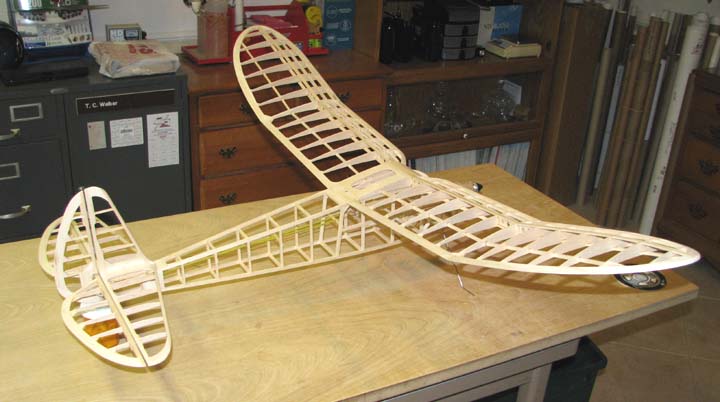 primary structure. The two 3/16" dowels have been cut to length, shaped, and