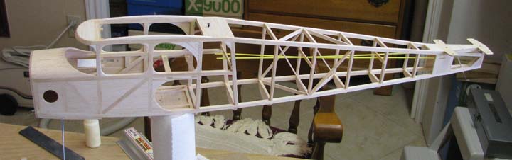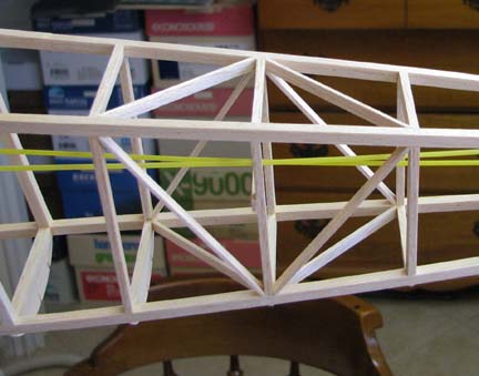 stiffen the structure up a bit, 1/16" X 3/16" balsa diagonals were added in