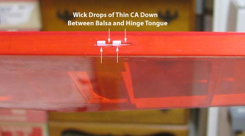 between the hinge tongue and the balsa slot in several places as shown