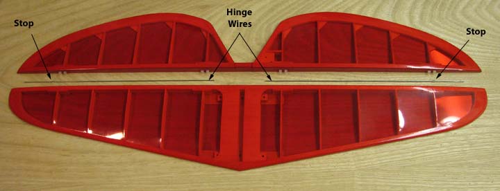 achieved with the 0.031" hinge wire. Then the loop is cut off of the nylon