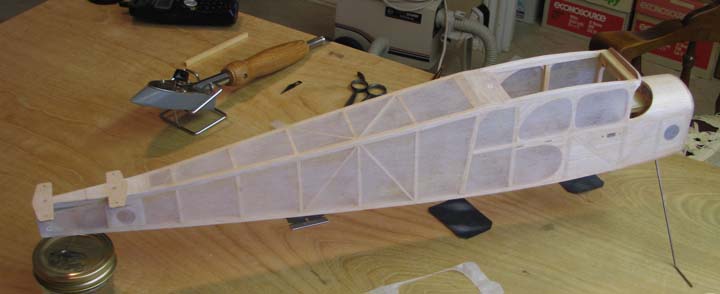 the Cloudster's fuselage and vertical tail covered with Polyspan lite. The