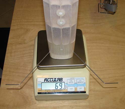 of 50/50 clear dope on the covering now weighs 69 grams as shown below. So