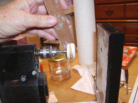 To shape the second wheel, I laid the drill press