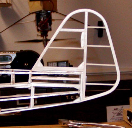 rudder is now ready to cover with tissue. I temporarily taped the rudder to