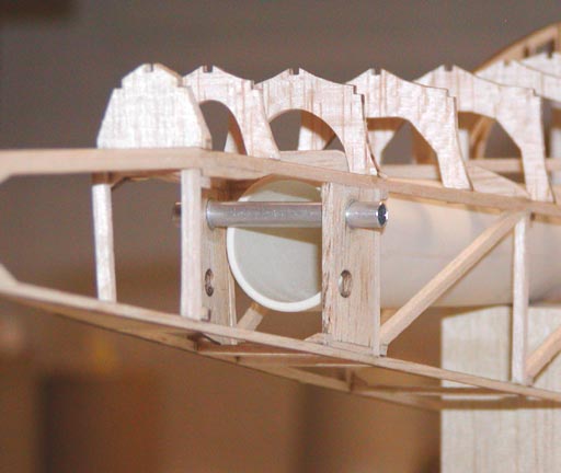 aluminum tube has replaced the 3/16" wooden dowel for the rubber motor peg.