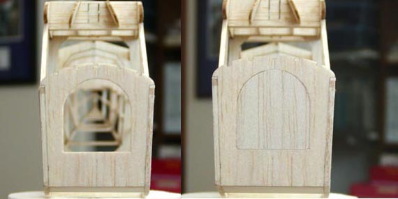 to the circular hole in the 3/32" front bulkhead as shown on the left below.