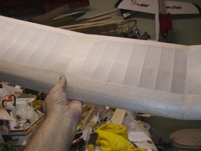 In this view you can see I have finished up covering the tail section and the fuselage sides with the Polyspan covering.