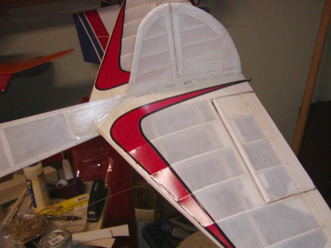 Looking at the entire side, and seeing it and the stab together, it is apparent to me at least, that the extra trim was a good idea. It looks like an entirely different plane now and I am not ashamed to say it belongs to me!