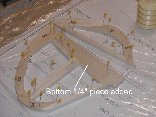 Notice that there is a piece of 1/4" square at the bottom of the movable rudder. This will not stay, but will be replaced with a piece of 1/4" large enough to hold the control horn on the rudder itself. You can see it in the next picture.