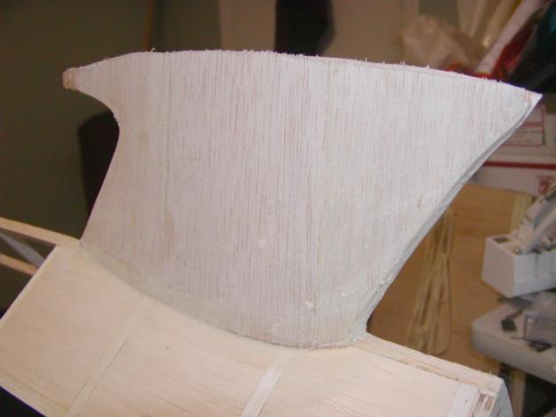 I sanded a curve into the bottom of the side sheeting so that when it was pressed against the pylon, it would mount flush with the fuselage side sheeting, and still follow the curvature of the pylon ribs.