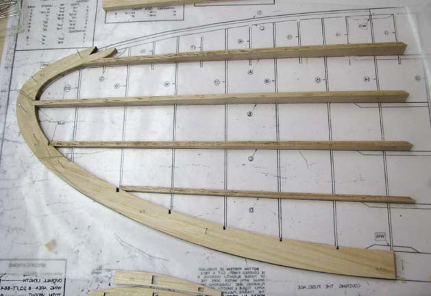 Finally five of the six sub ribs were glued in place as shown below. Oh yes,