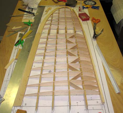 3/32" sheet balsa, I cut, fitted, and glued a series of diagonal strips