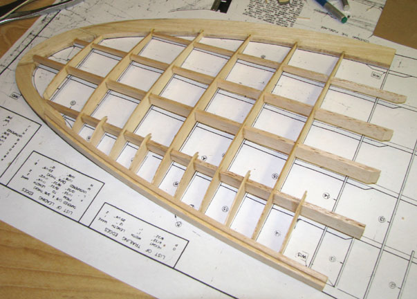 tapered spars were inserted into the rib cut outs and also glued in place.