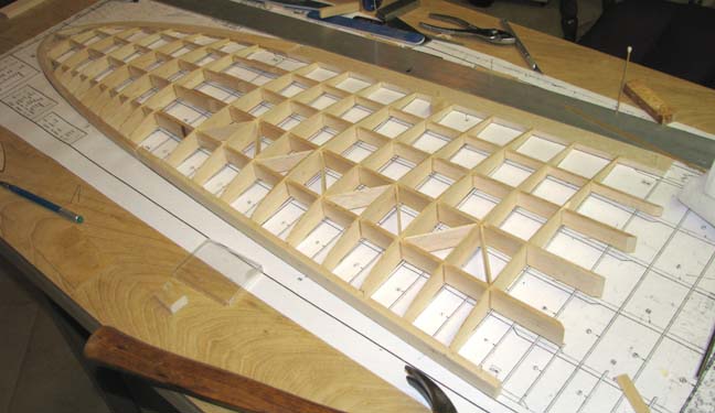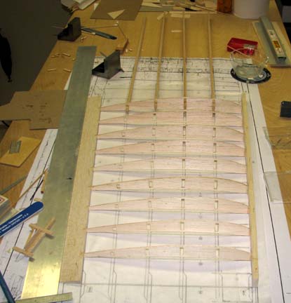 spars. Each rib was carefully aligned with each spar over the plan to get