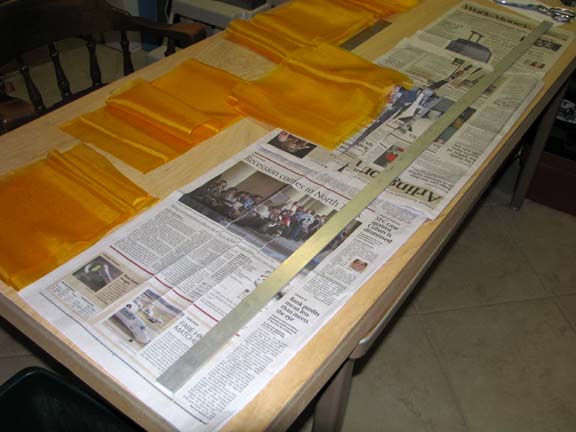 orange silk into the nine separate panel pieces for the second covering of