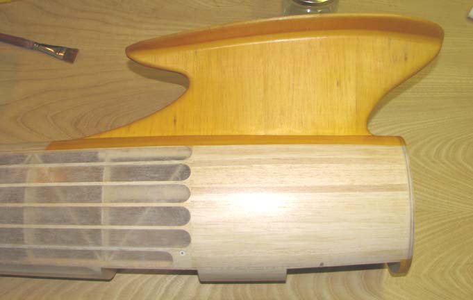 go over the fuselage's third coat of clear dope with 600 grit paper as the