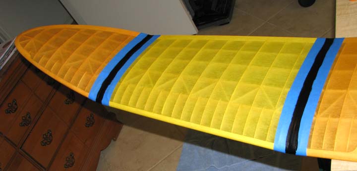 either side of the 1/8" dihedral rib with 1/4" Pactra gray masking tape and