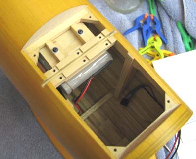 The new battery mounting plate was made from 1/8" plywood. Two small spruce