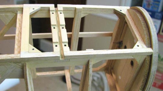 the landing gear rear strut spruce mount and the spruce member at the back