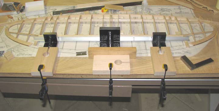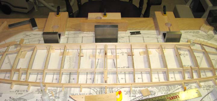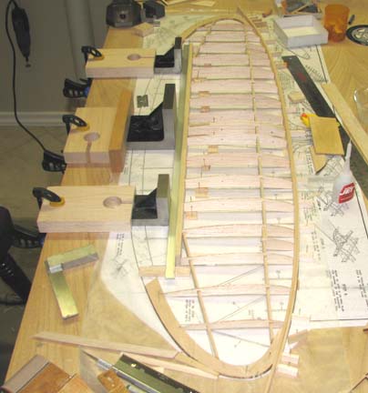 the back of the 1/4" balsa rear spar to maintain straightness and to hold it