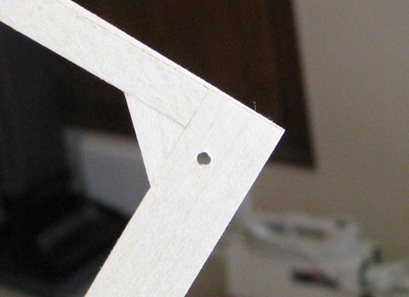 of one of the 1/8" plywood triangles glued in the corners of the radio hatch