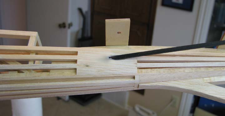 of the fuselage structure. In the picture below, a 1/4" balsa block has been
