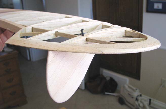 balsa inserted at the top of the slot, thus rigidly securing the it to the