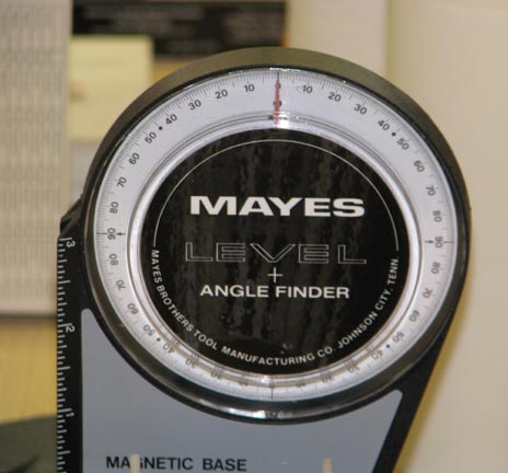 trimming and sanding, and set up, etc., the inclinometer read essentially